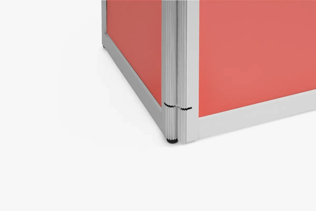 Le modèle adBox Standard se distingue par son montage extrêmement rapide et sans outil. Les impressions sont précadrées, ce qui signifie quune fois le support sorti du sac de transport, il vous suffit denjamber les côtés de la structure et de les verrouiller en place avec la tablette et le top. Une fois le plateau en place, le produit est prêt à lemploi.