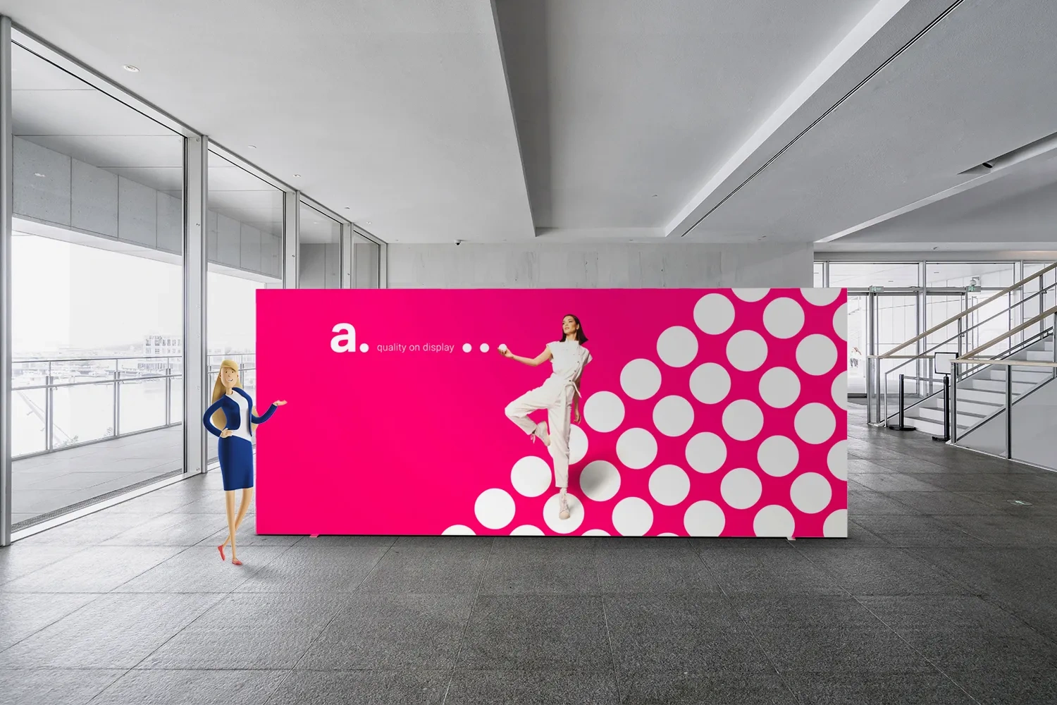 Sur un stand lors de vos salons : Les panneaux lumineux positionnés autour de votre stand délimitent clairement votre espace. Elles peuvent également servir de séparateurs pour créer des sections dédiées, comme un coin détente, lors d’un événement.