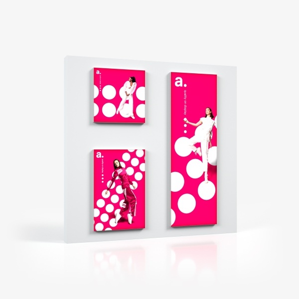 Le panneau textile adFrame Poster est une solution marketing légère et élégante qui s’intègre parfaitement dans les centres commerciaux, les musées, les vitrines, les salons de beauté ou les salles d’exposition des entreprises. Grâce aux visuels interchangeables, il est facile de modifier la décoration intérieure en commandant simplement un graphisme. La structure reste la même !