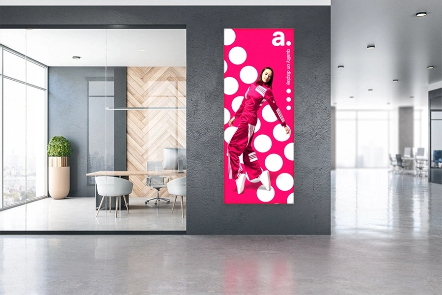 Le panneau textile adFrame Poster est une solution marketing légère et élégante qui s’intègre parfaitement dans les centres commerciaux, les musées, les vitrines, les salons de beauté ou les salles d’exposition des entreprises. Grâce aux visuels interchangeables, il est facile de modifier la décoration intérieure en commandant simplement un graphisme. La structure reste la même !