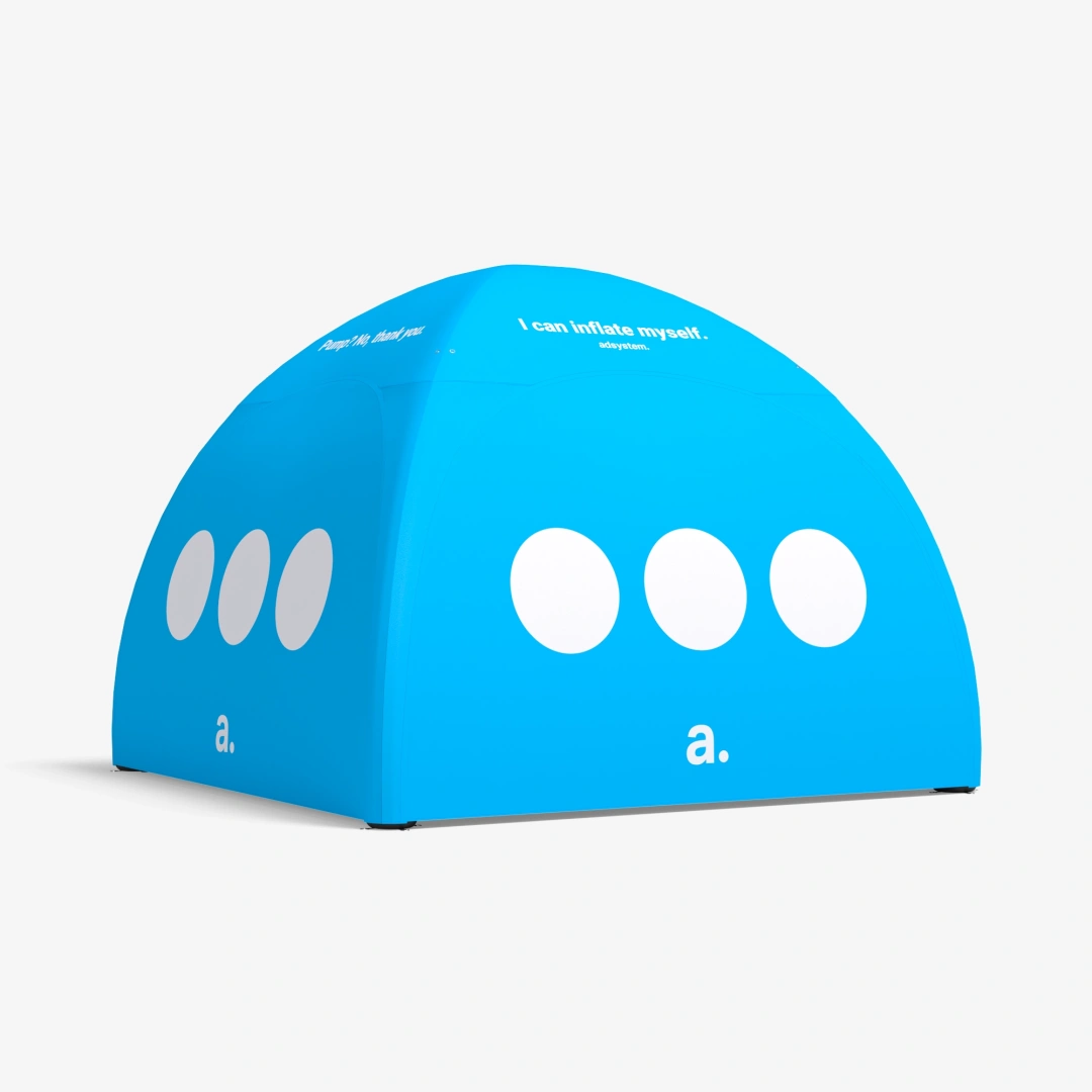 Vous en avez marre de rechercher des prises électriques lors de vos événements, de gonfler à la main votre tente et de gérer les câbles électriques ? La tente publicitaire innovante et intelligente adTent Air Premium Automatic vous simplifie la vie. Grâce à une pompe intégrée avec batterie, elle fonctionne sans alimentation externe. L’ensemble est prêt à l’emploi, où que vous soyez : sur la plage, à la montagne ou en centre-ville. C’est la tente automatique la plus avancée et moderne pour vos événements extérieurs.