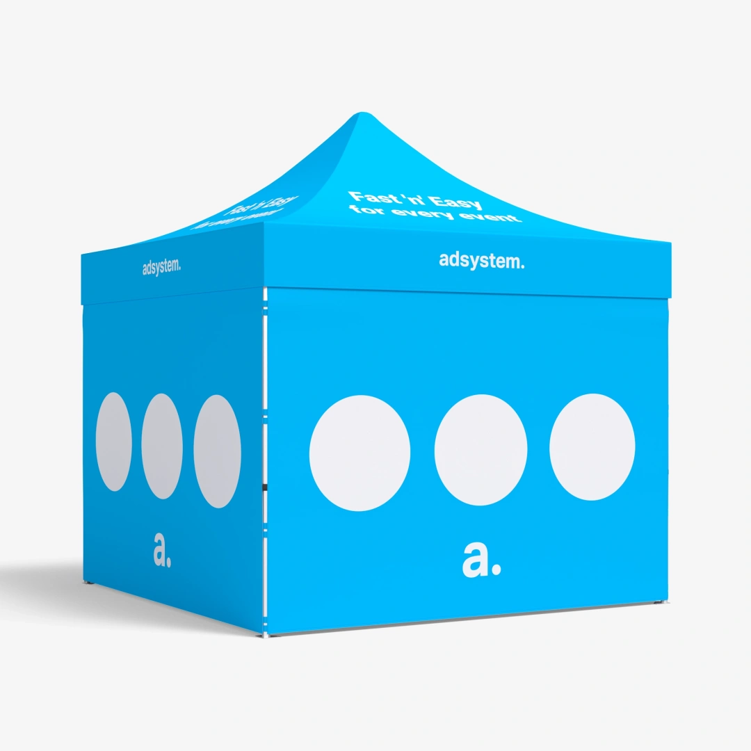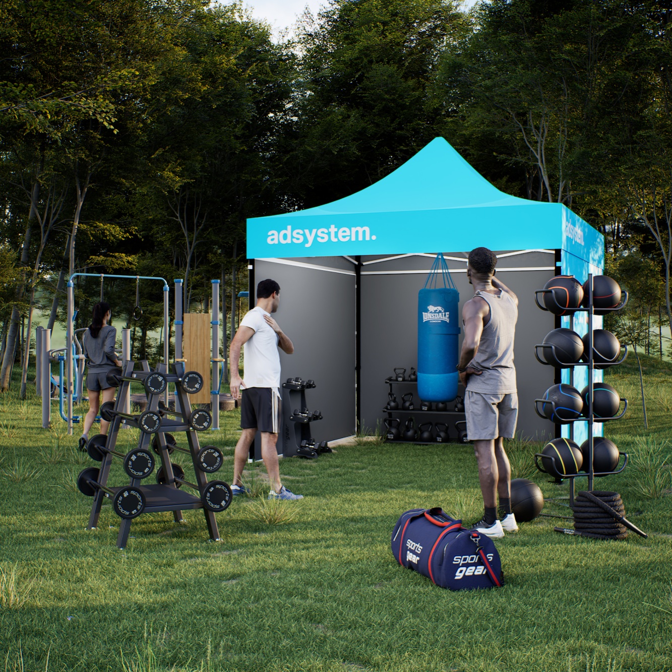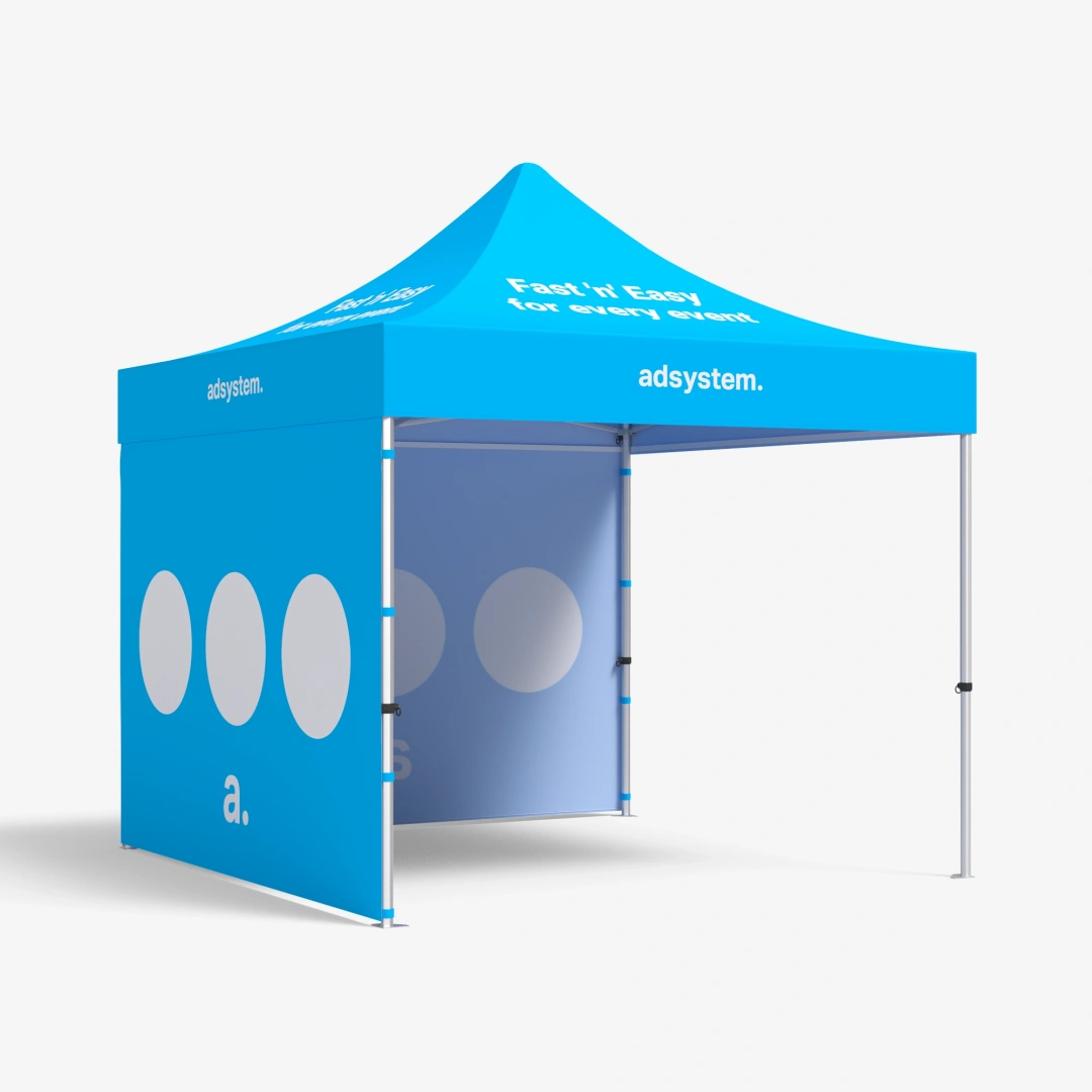 La tente barnum adTent Express Pro est une nouvelle version de notre produit. Par rapport à la version standard, l’Express Pro se distingue par une construction renforcée et un système de verrouillage des pieds plus pratique. Les tentes express de ce type seront un excellent complément à vos activités promotionnelles en plein air, même dans des conditions météorologiques difficiles, mais aussi à l’intérieur. Nos tentes de vente vous permettent d’aménager un poste de travail confortable et vous aident à mener une campagne publicitaire cohérente, grâce à l’installation d’impressions personnalisées sur les parois et le toit de la tente.