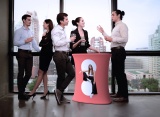 En Conférences : lors des conférences, le comptoir pliable pour stand constitue un stand esthétique et fonctionnel. Les impressions interchangeables facilitent la personnalisation des graphiques pour différents thèmes et campagnes, ce qui accroît la polyvalence du produit.