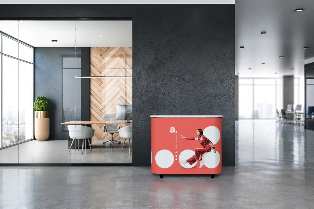 Le comptoir publicitaire adTribune Elypse est un comptoir d’exposition mobile qui convient parfaitement à de nombreux événements promotionnels. Sa conception à roulettes garantit sa mobilité, tandis que la possibilité de changer d’impression permet de maintenir votre message publicitaire à jour.