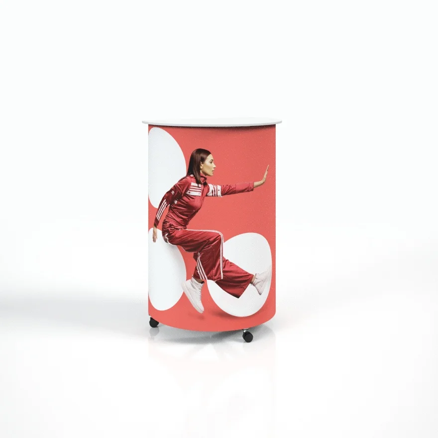 Pour les Événements marketing : grâce aux imprimés interchangeables, la table promotionnelle peut être utilisée à plusieurs reprises lors de divers événements.