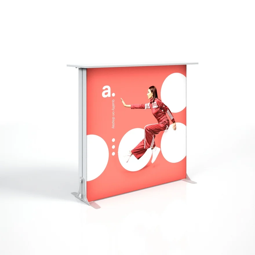 Le comptoir lumineux Smart LED est un comptoir publicitaire avec lequel vous pouvez créer un espace de travail pratique et mettre en valeur votre message publicitaire. Sur le comptoir, vous pouvez présenter des produits, du matériel promotionnel ou préparer un lieu de rencontre avec vos clients. Nous placerons votre graphisme personnalisé sur l’impression textile, qui sera très visible grâce à l’éclairage LED.