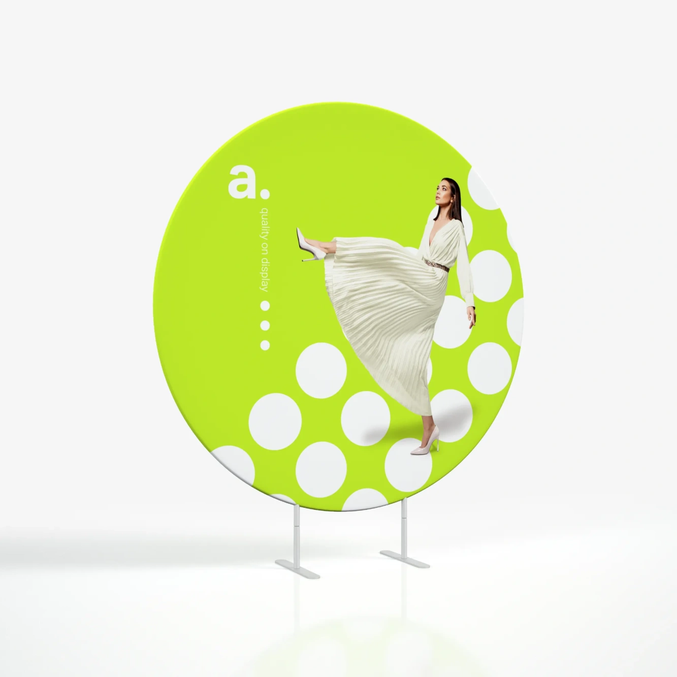 Le stand rond Vario Flat Ring Léger est un mur d’images circulaire qui se distingue par sa forme inhabituelle et qui est idéal pour une variété d’applications promotionnelles. Il convient parfaitement aux réunions industrielles, aux événements promotionnels et aux conférences.