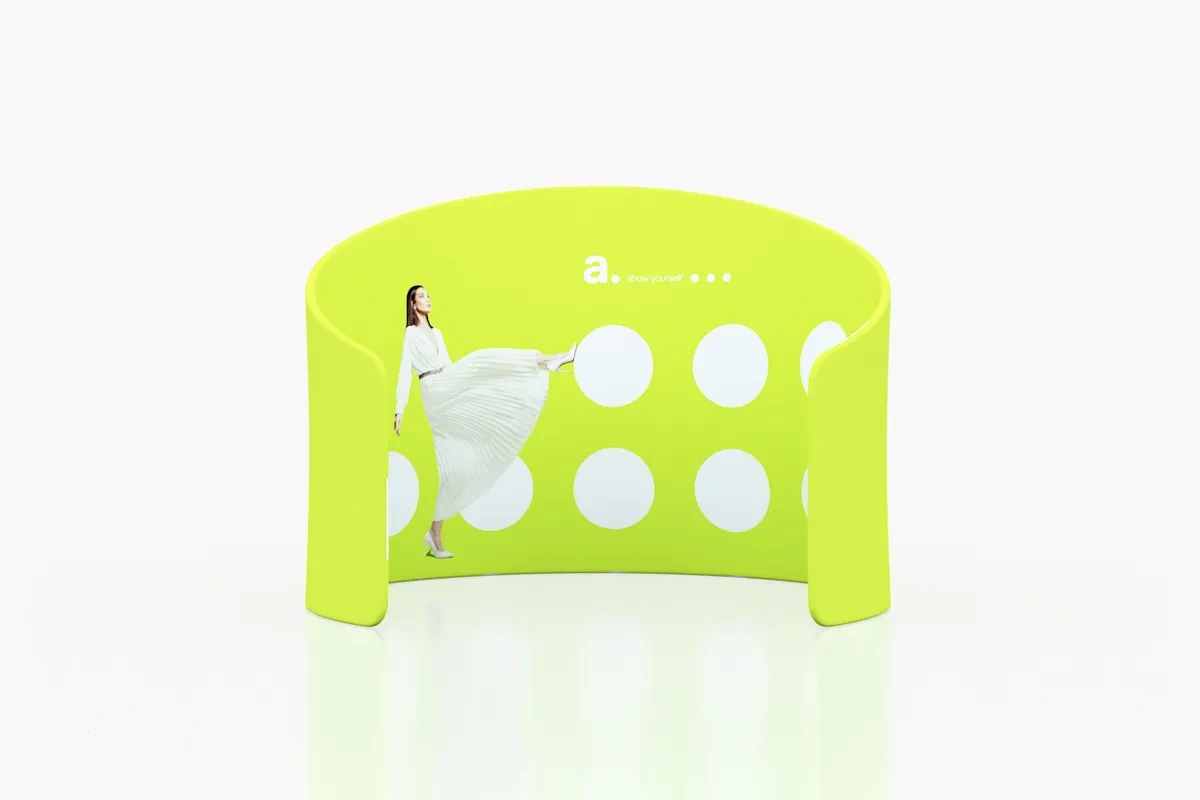 Le stand adWall Vario Island est un stand commercial en forme d’île, qui se distingue par son design inhabituel. L’utilisation de ce produit assurera une visibilité encore plus grande à votre marque lors des événements d’exposition les plus variés. Le produit se compose d’une structure en aluminium encliquetable et d’une impression textile.