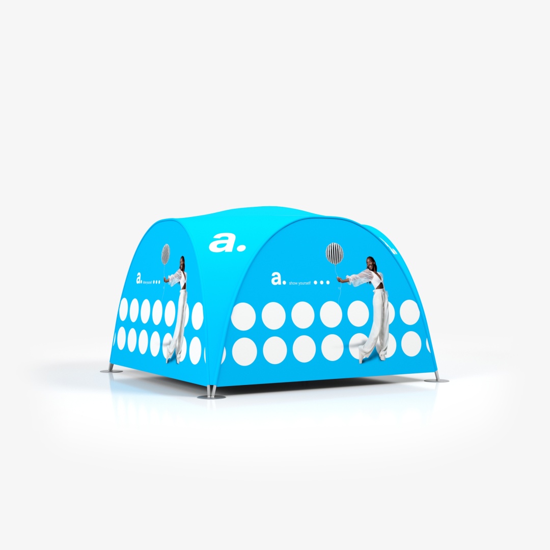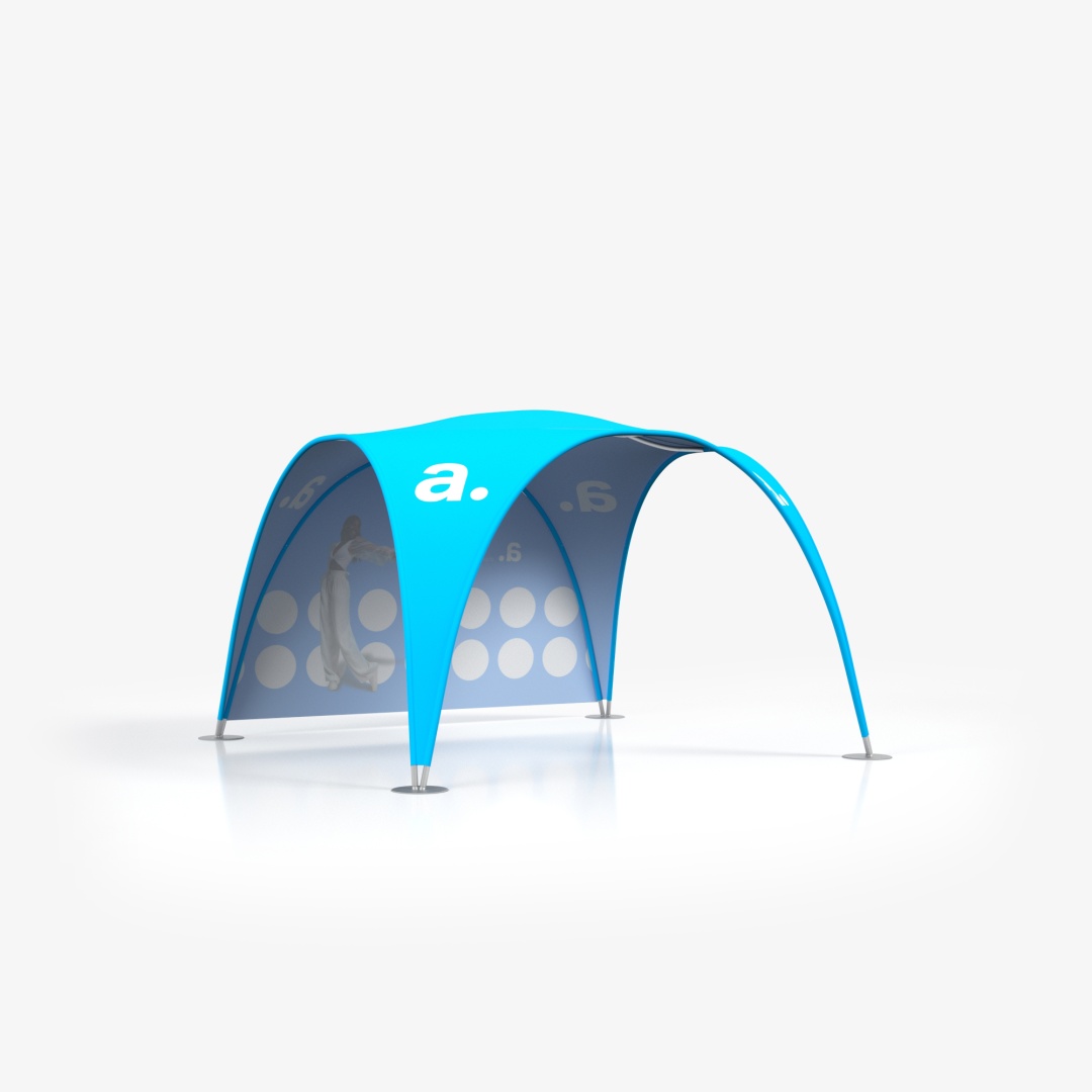 La tente tubulaire adTent Vario est un produit d’exposition, avec lequel vous pouvez organiser un stand confortable et pratique. Elle convient aussi bien à lextérieur quà lintérieur, car le tissu du toit et des parois est imprégné et certifié difficilement inflammable. La tente d’exposition présentée ici sera également un support publicitaire efficace, car nous placerons vos graphiques personnalisés sur les impressions textiles. La construction de la tente est basée sur un cadre tubulaire, qui se connecte au moyen de boutons-pression.