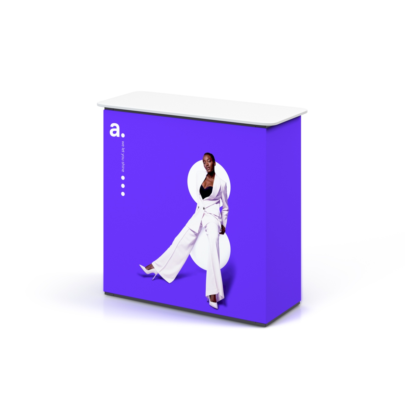 Le comptoir Multiframe est un complément pratique au système d’exposition, créant un espace naturel pour les discussions, les présentations et les premiers contacts avec vos clients. Il apporte une cohérence visuelle à votre stand et renforce la visibilité ainsi que la mémorisation de votre marque.