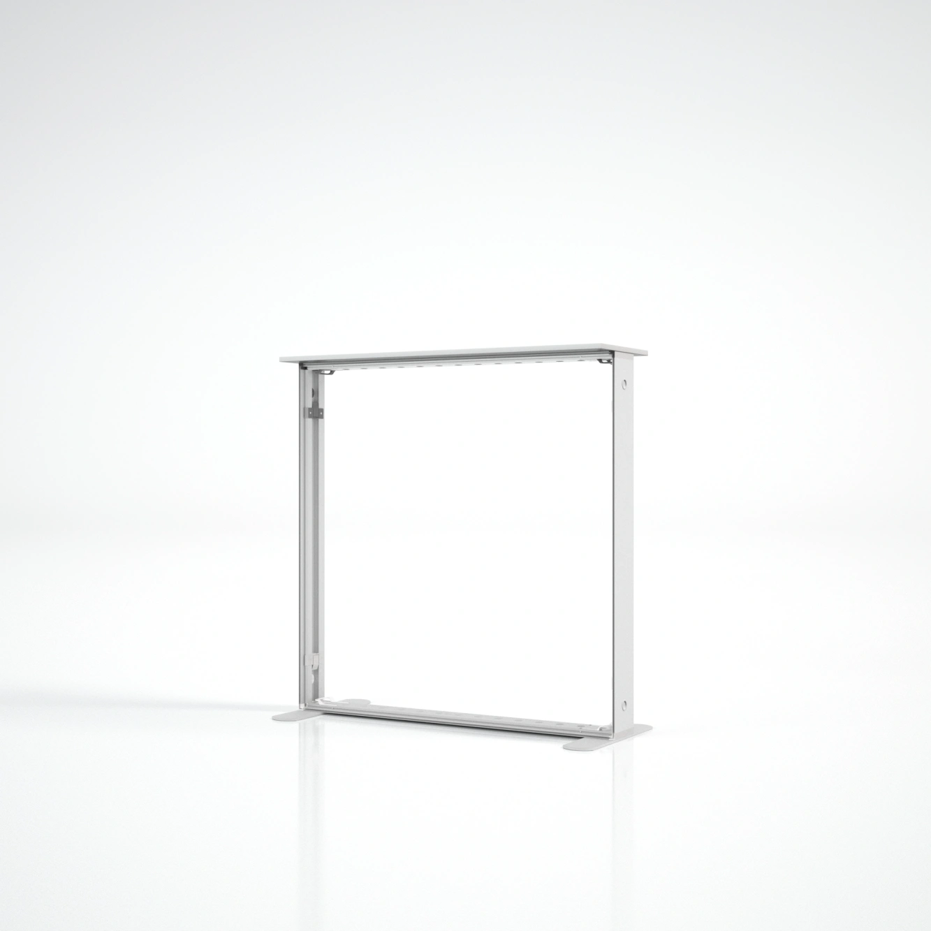 adTribune SEGO est un comptoir stand élégant et rétroéclairé, conçu comme un complément naturel aux panneaux SEGO. Sa structure légère, sa large surface de plateau et son éclairage LED en font un élément fonctionnel et visuellement impactant pour tout stand d’exposition.